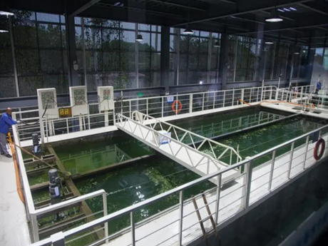 采用高效可調(diào)式渦井取藻、藍(lán)藻囊團(tuán)破壁、一體化二級強(qiáng)化氣浮等核心技術(shù),岸上站點(diǎn)藻水分離系統(tǒng)集成了藍(lán)藻打撈、脫氣沉降、氣浮分離、脫水等多個(gè)環(huán)節(jié)的技術(shù)和設(shè)備,形成了可規(guī)?;凸S化處理藍(lán)藻的基站。適用于藍(lán)藻水華長期規(guī)律性、大范圍聚集區(qū)域的常態(tài)化應(yīng)急處置。